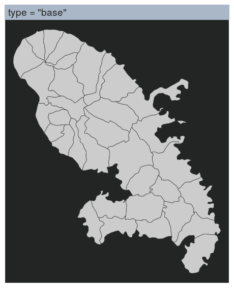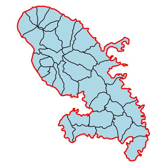 mtq <-mf_get_mtq()# Plot the base mapmf_map(x = mtq)