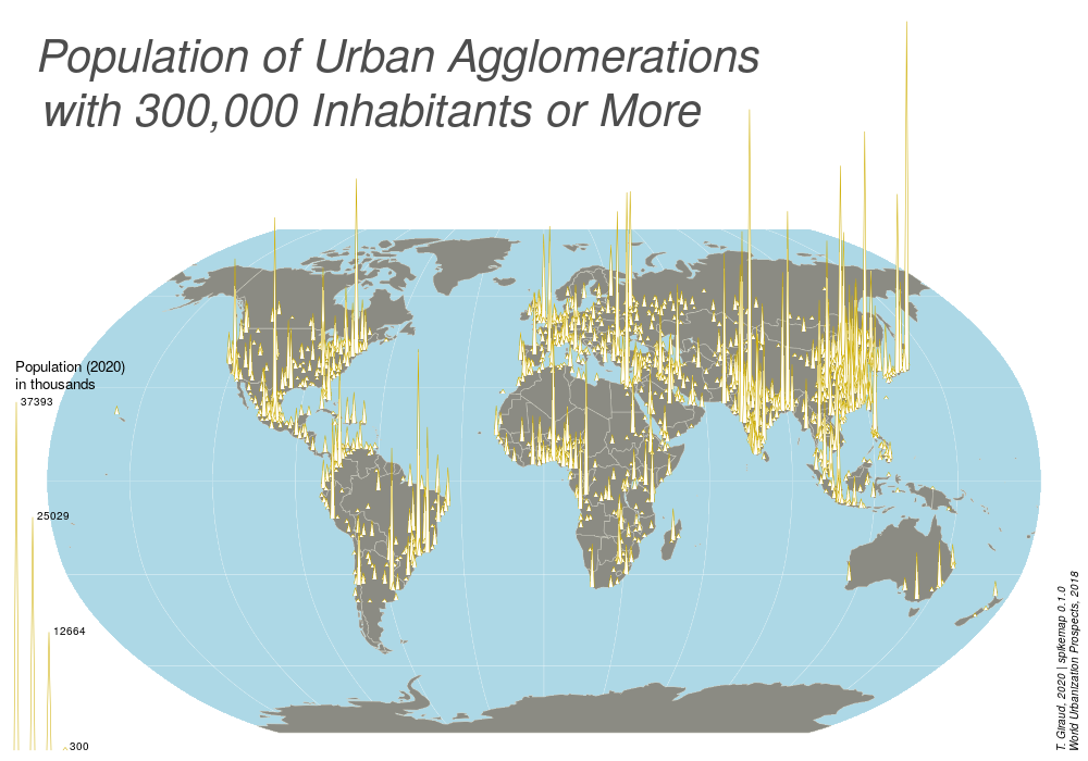 It is possible to map quantities with circles, squares or other simple geometric symbols, spikemap uses spikes.