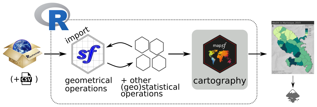 Lovelace, Robin, Jakub Nowosad, and Jannes Muenchow. 2019. Geocomputation with R. CRC Press. https://r.geocompx.org/.